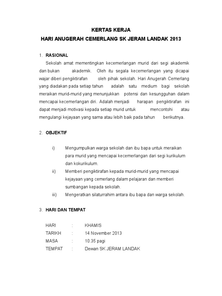 Kertas Kerja Majlis Anugerah Cemerlang Pdf